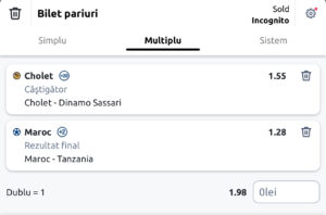 Mizez pe Cholet să câștige meciul, au pierdut primul meci acasă și au câștigat la Sassari, mă aștept să se impună azi, iar la Cupa Africii pe Națiuni mizez pe Maroc, una dintre cel mai valoroase echipe, diferență mare de lot între cele două și mă aștept la debut cu victorie pentru Maroc.