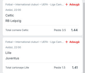 Mizez pe Lille să aibă cel puțin 2 cartonașe, au medie de 2,9 cartonașe pe meci în liga campionilor și mă primească cel puțin două și azi.