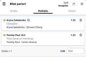 Mizez pe Sabalenca să câștige meciul, iar Tommy Paul să nu piardă la 9 game-uri meciul.