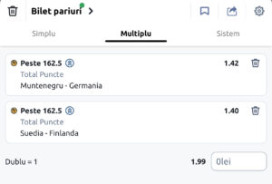 Avem debut la EuroBaschet și voi miza pe puncte, în primul meci avem Muntenegru ce a avut o medie de 82,2 puncte în meciurile de pregătire din această vară și a permis medii de: 82,4 puncte, în timp ce Germania a înscris medii de: 89,7 puncte și a permis medii de: 84 de puncte în defensivă.