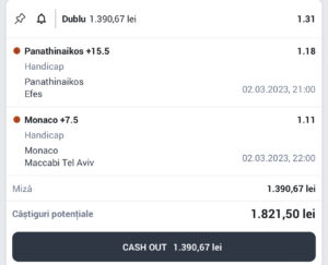 🏀Mizez pe Panathinaikos sa nu piardă la 16 puncte, au schimbat antrenorul și au pierdut greu la Milano, ma aștept sa acopere acest handicap, Efes fără Micic si Panathinaikos pot acoperi acest handicap, iar Monaco este o nuca tare pe teren propriu, in timp ce Maccabi este cea mai slaba echipa din deplasare in Euroliga.